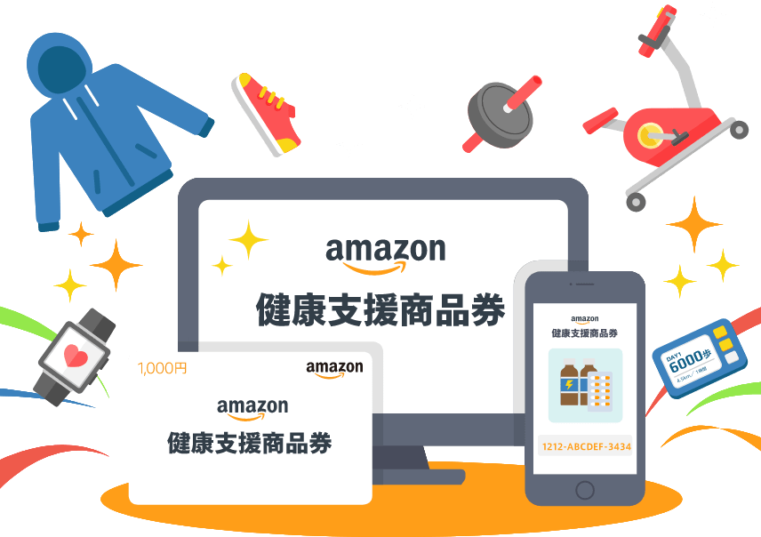 Amazon健康支援商品券は、Amazon種類別商品券の一種であり、世界最大のECサイト「Amazon.co.jp」にある商品カテゴリの中から、健康維持・促進に役立つ商品のご購入にのみご利用いただけるコード型ギフトカードです。